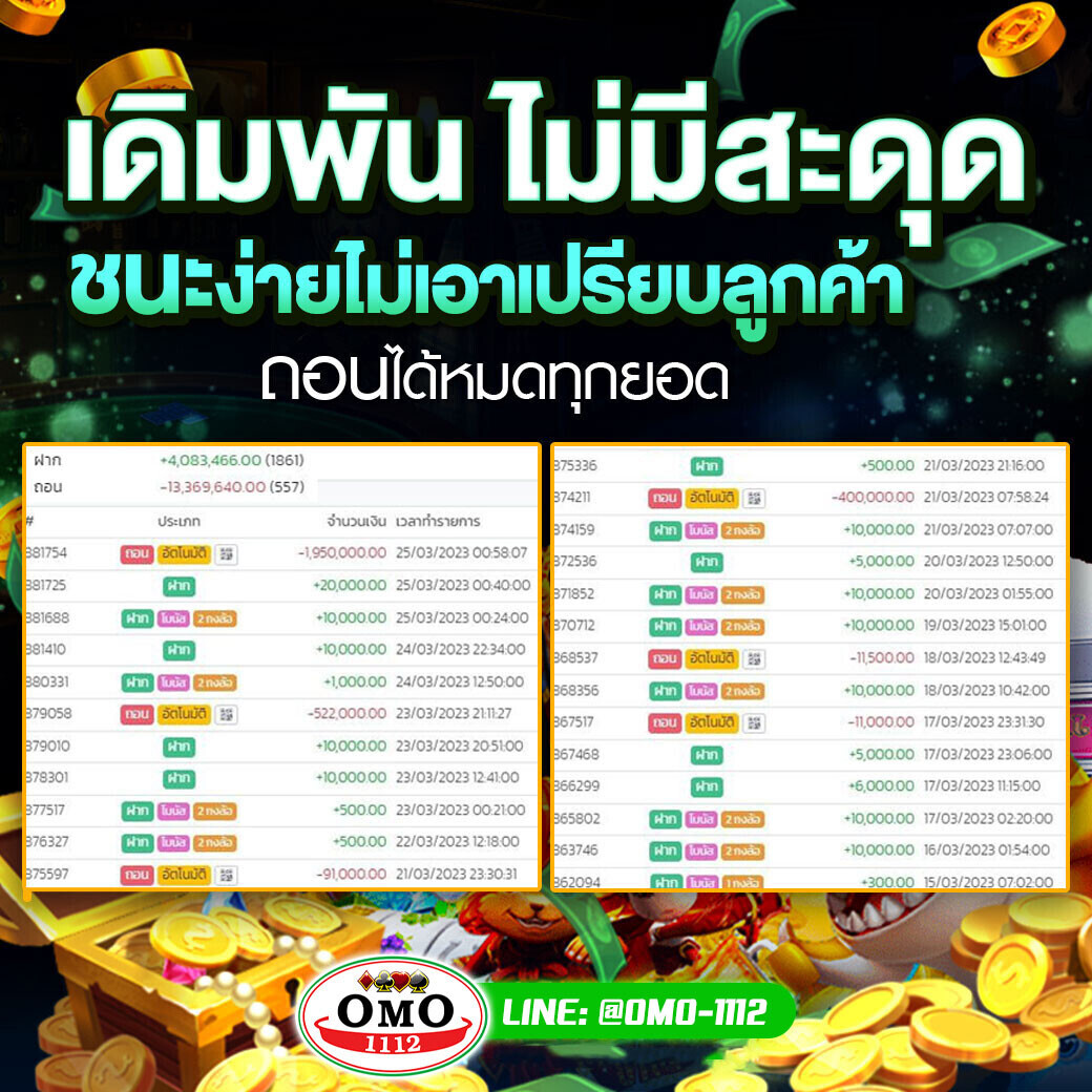 OMO1112 ของเรารวบรวมคาสิโน สล็อตออนไลน์ รูเล็ท ไฮโล น้ำเต้าปูปลา และอื่นๆ อีกมากมาย มีมาตรฐานอันดับต้นๆ ของวงการพนันออนไลน์ แอดมินมืออาชีพ น่ารัก ใจดีคอยบริการ สล็อตออนไลน์ตลอด 24 ชม. ฝาก - ถอนด้วยระบบ ออโต้ รวดเร็วทันใจแน่นอน พร้อมกิจกรรมดีๆ อีกเพียบ ให้ลูกค้า คุ้มค่าแน่นอน เกม BETFLIX อัพเดตตลอดทุกอาทิตย์ ไม่มีเบื่อ เราเปิดให้บริการมายาวนานเกิน 5 ปี ท่านจึงไว้วางใจได้ว่าเราไม่ใช่เว็บพนันที่เปิดเพื่อมาโกงลูกค้า เราไม่เคยมีประวัติเสียหาย ท่านสามารถเช็คประวัติของเราได้ เรายินดีบริการด้วยหัวใจ ไม่คิดเอาเปรียบลูกค้าไม่ว่าทางใดก็ตามอย่างเด็ดขาด